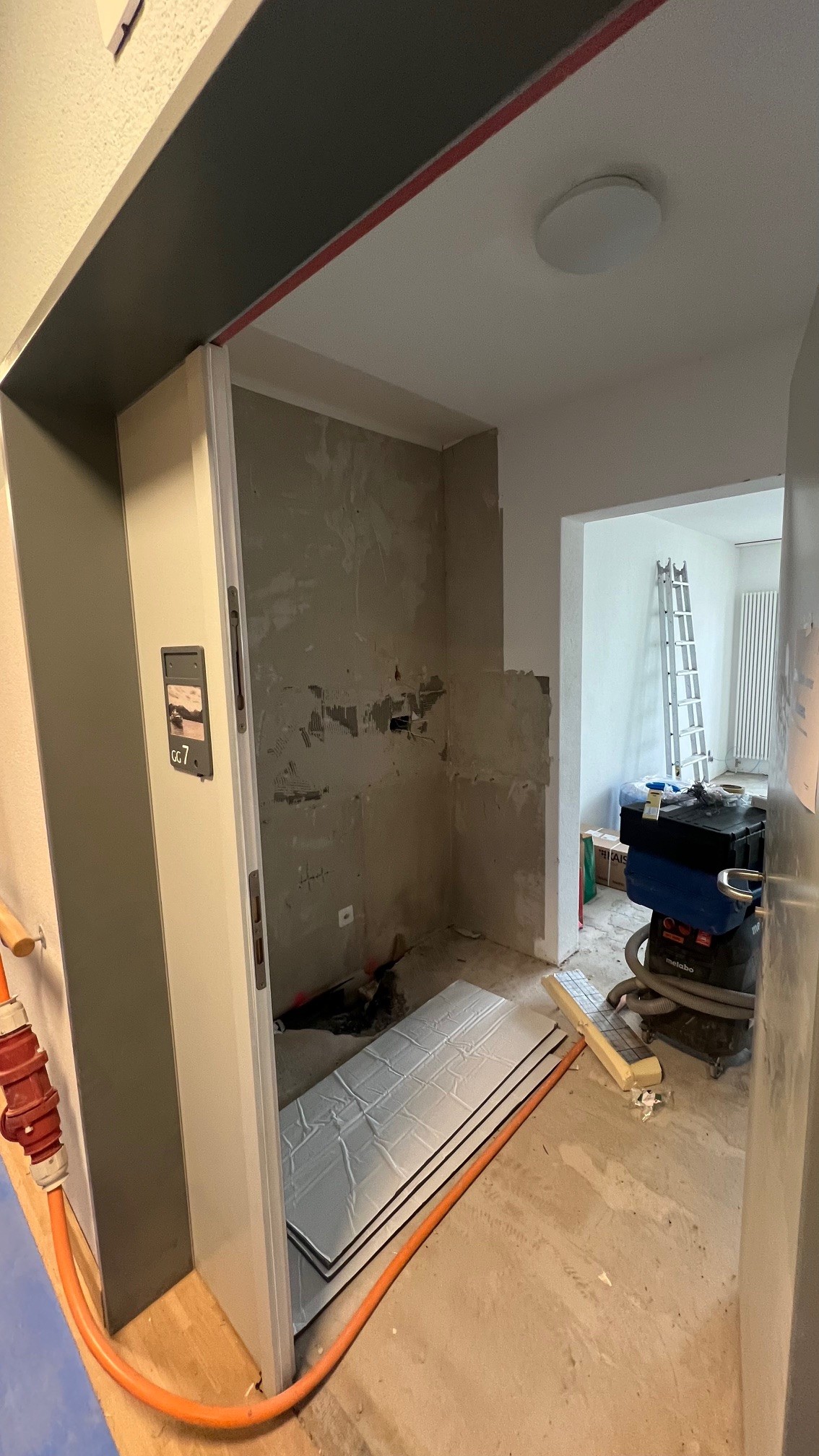 Dann ging der Lärm los! Die Strangsanierung und die komplette Sanierung der Badezimmer und des Eingangsbereichs erfordert von allen Gewerken genaues Zusammenarbeiten, geplant durch unserer Bauführerin von der Brügger Architekten AG.